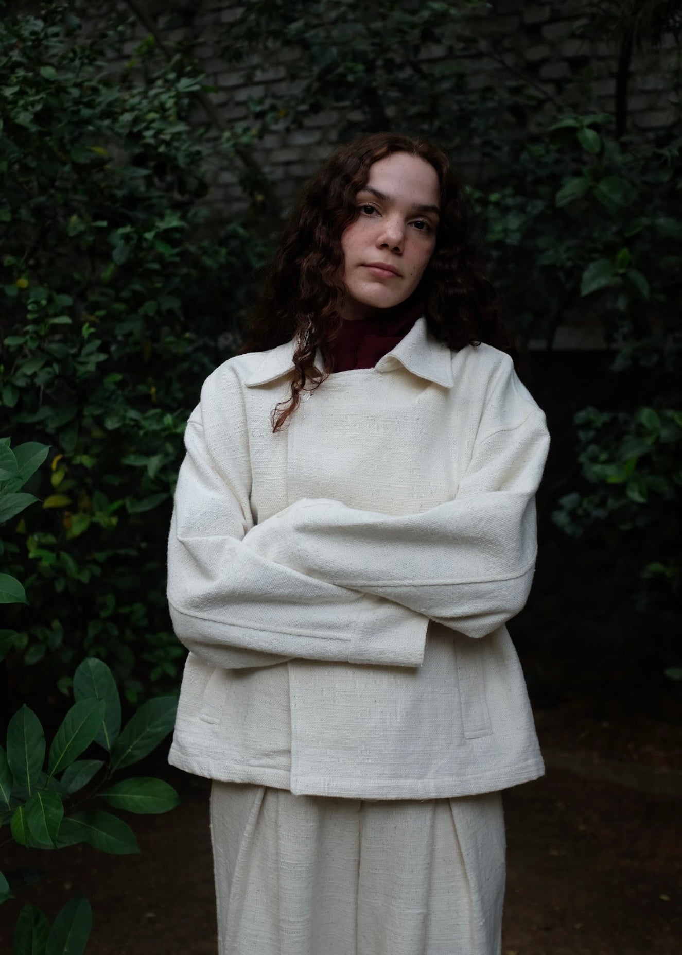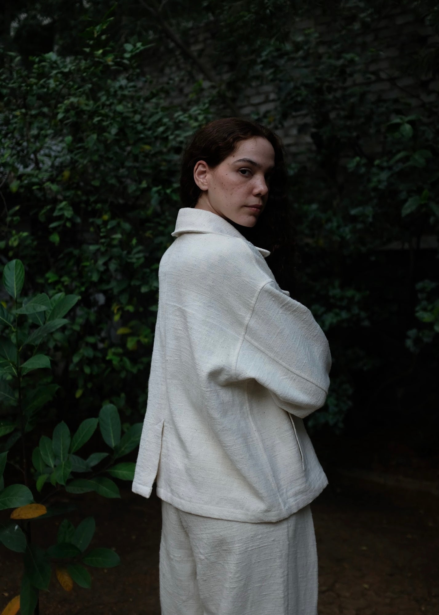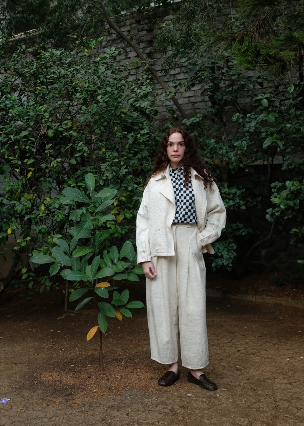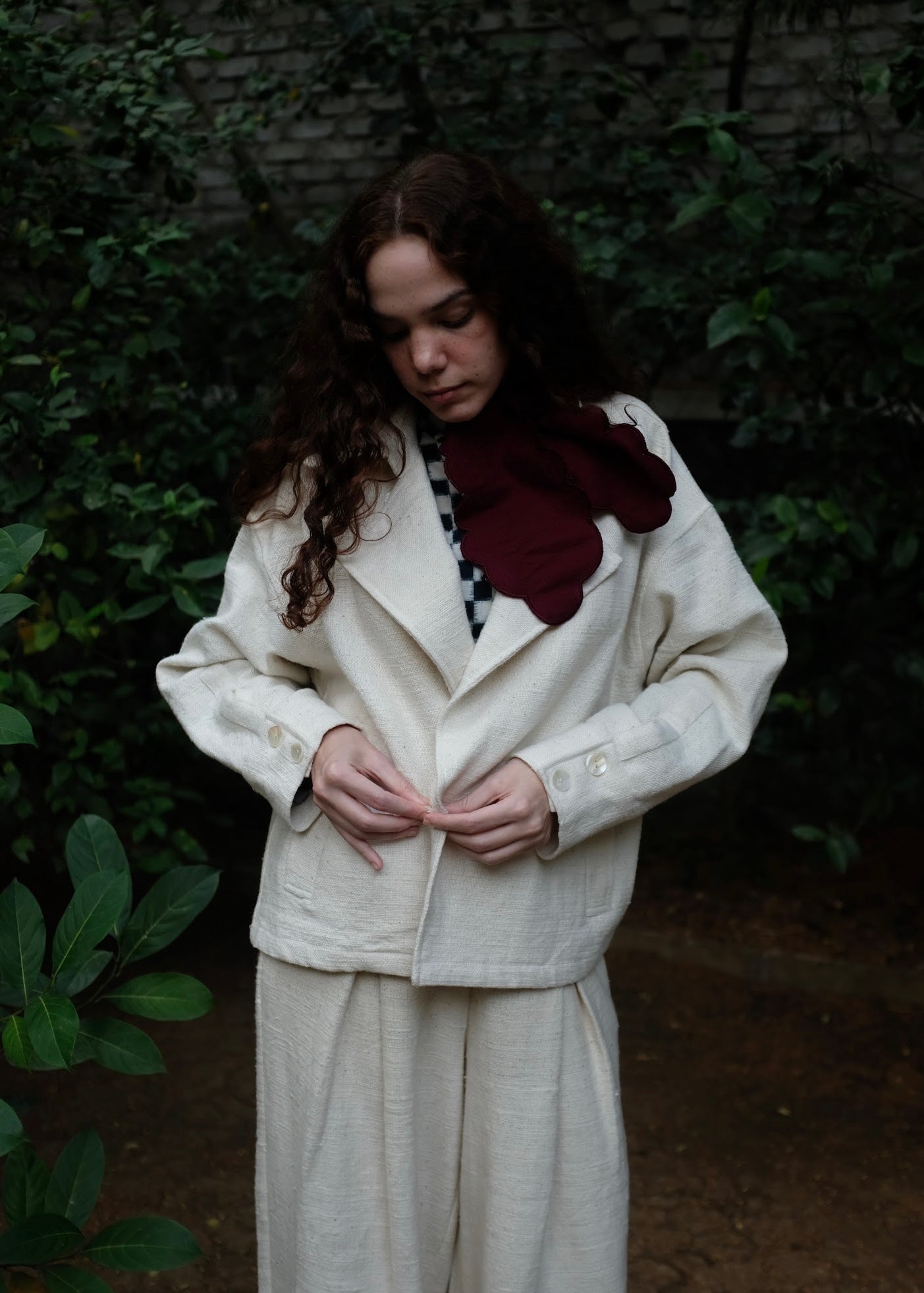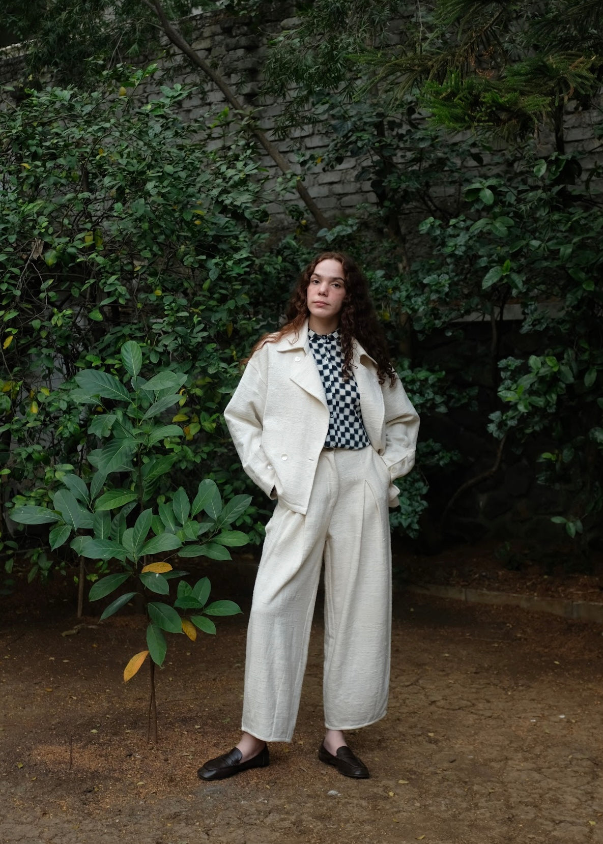 A classic versatile wardrobe staple, this double-breasted oversized jacket is crafted from heavy weight handspun handwoven indigenous cotton, lending it strength, texture, and longevity. Defined by wide and oversized lapels and buttons placed in a manner that allows the coat to be styled in three distinct ways, adapting effortlessly to form and function.