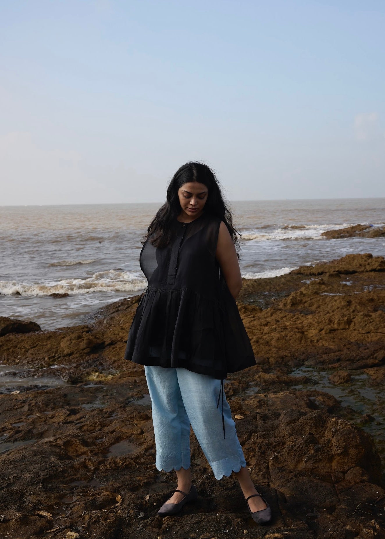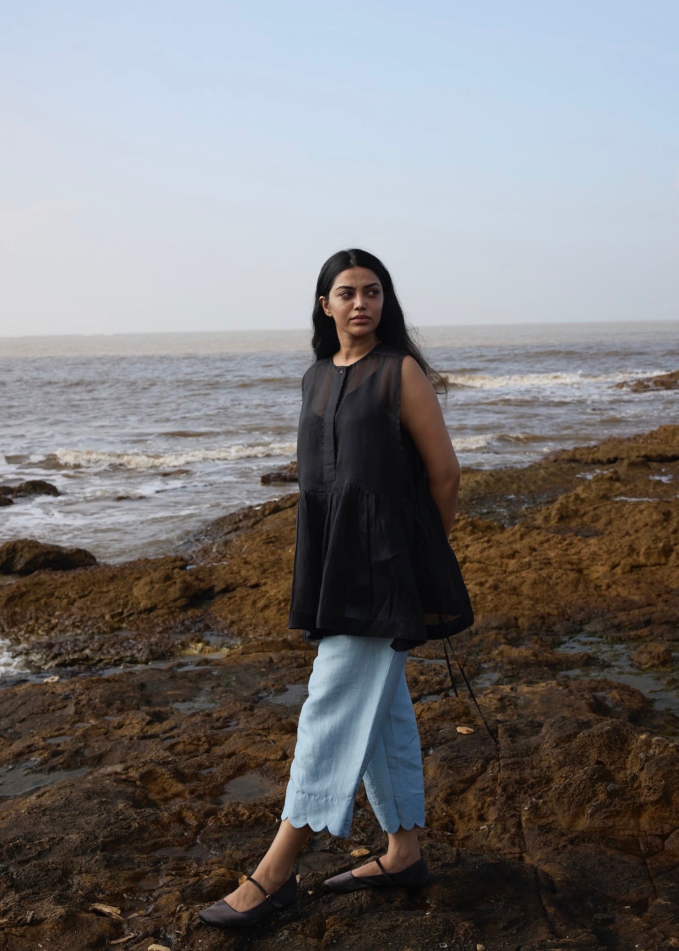 'Gia' is a top that doubles up as a layer, making it a versatile piece. 'Gia' is cut in silk organza and comes with a mulberry slip. With it sides fully open, the top fastens at the side with thin drawstrings.
