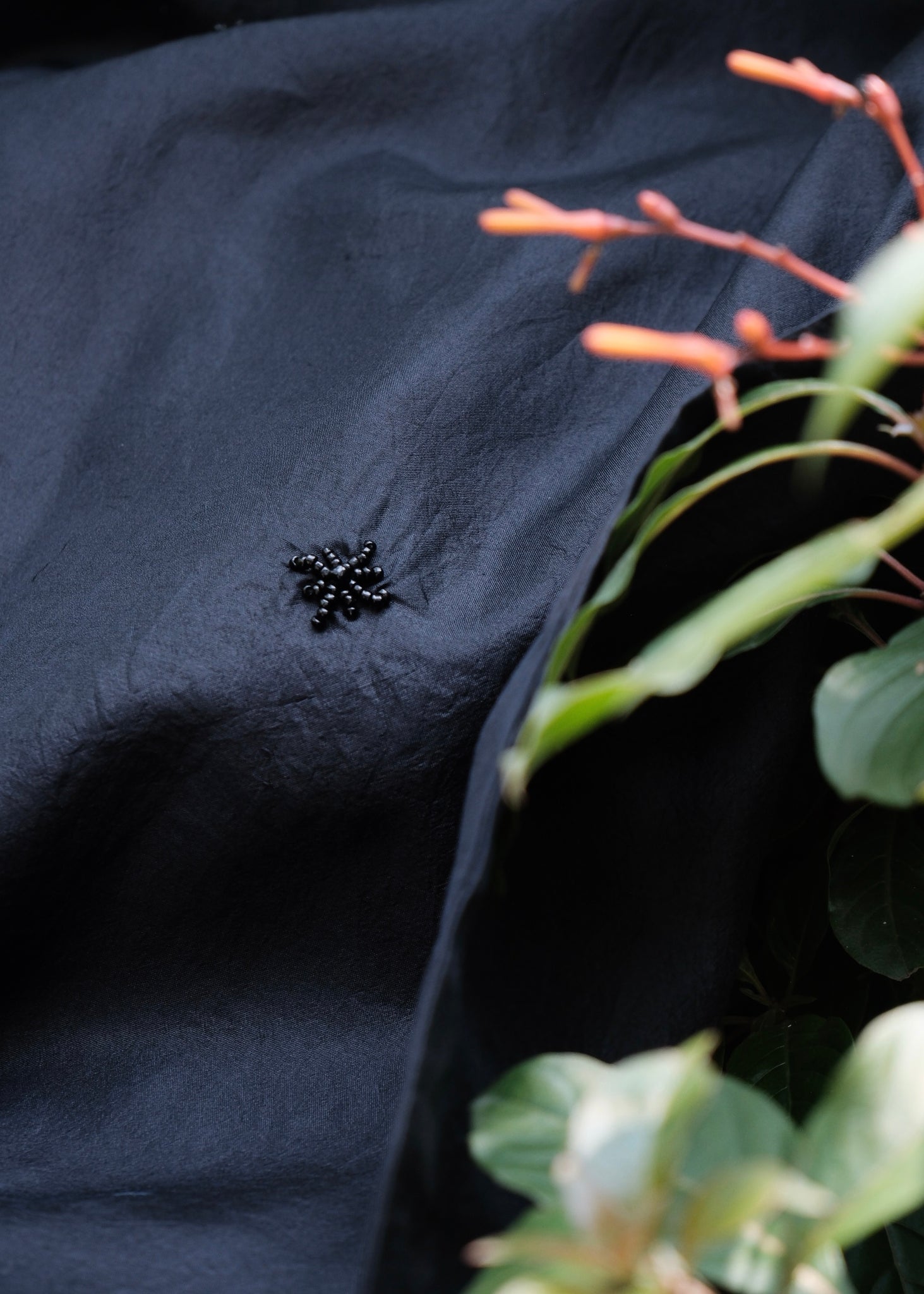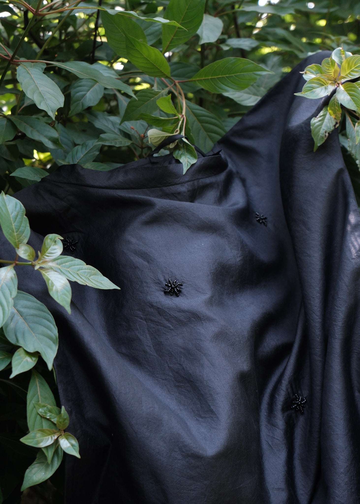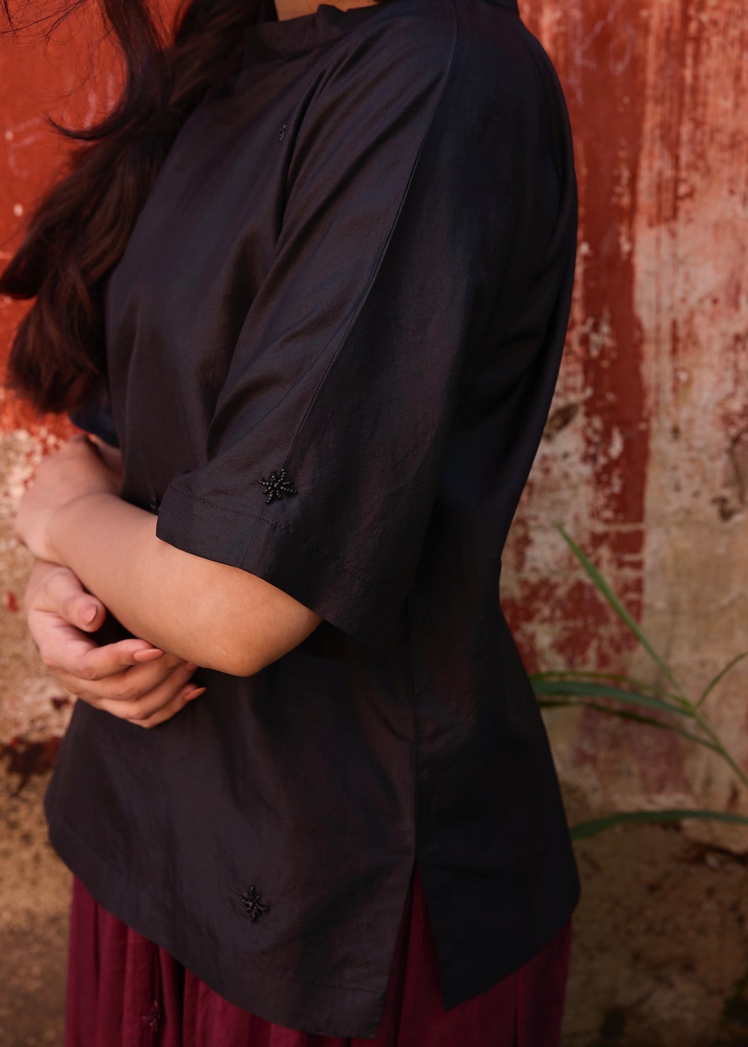 'Irene' is a take on our staple 'Ivy' box fit top. This time around with a little bit of surface ornamentation for the holiday season. The top is cut in a handwoven mulberry silk