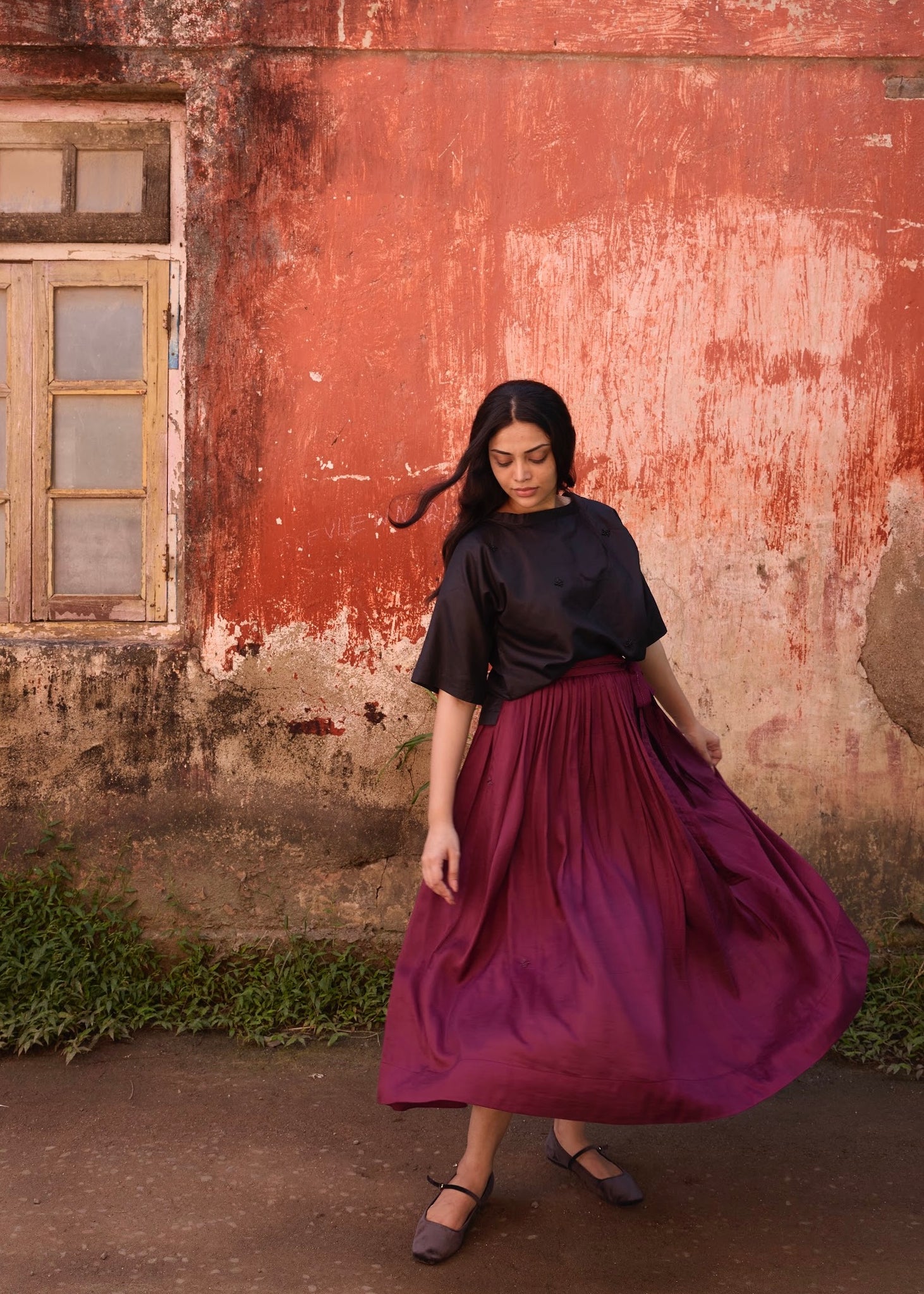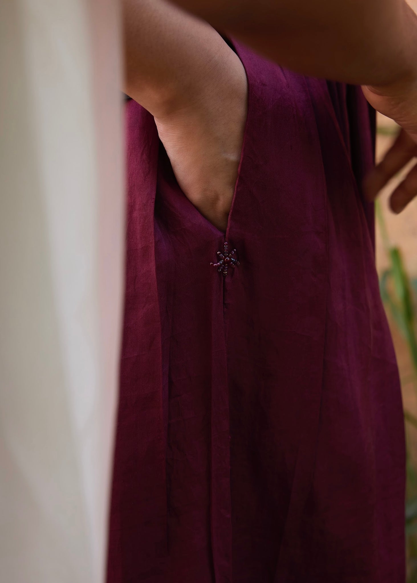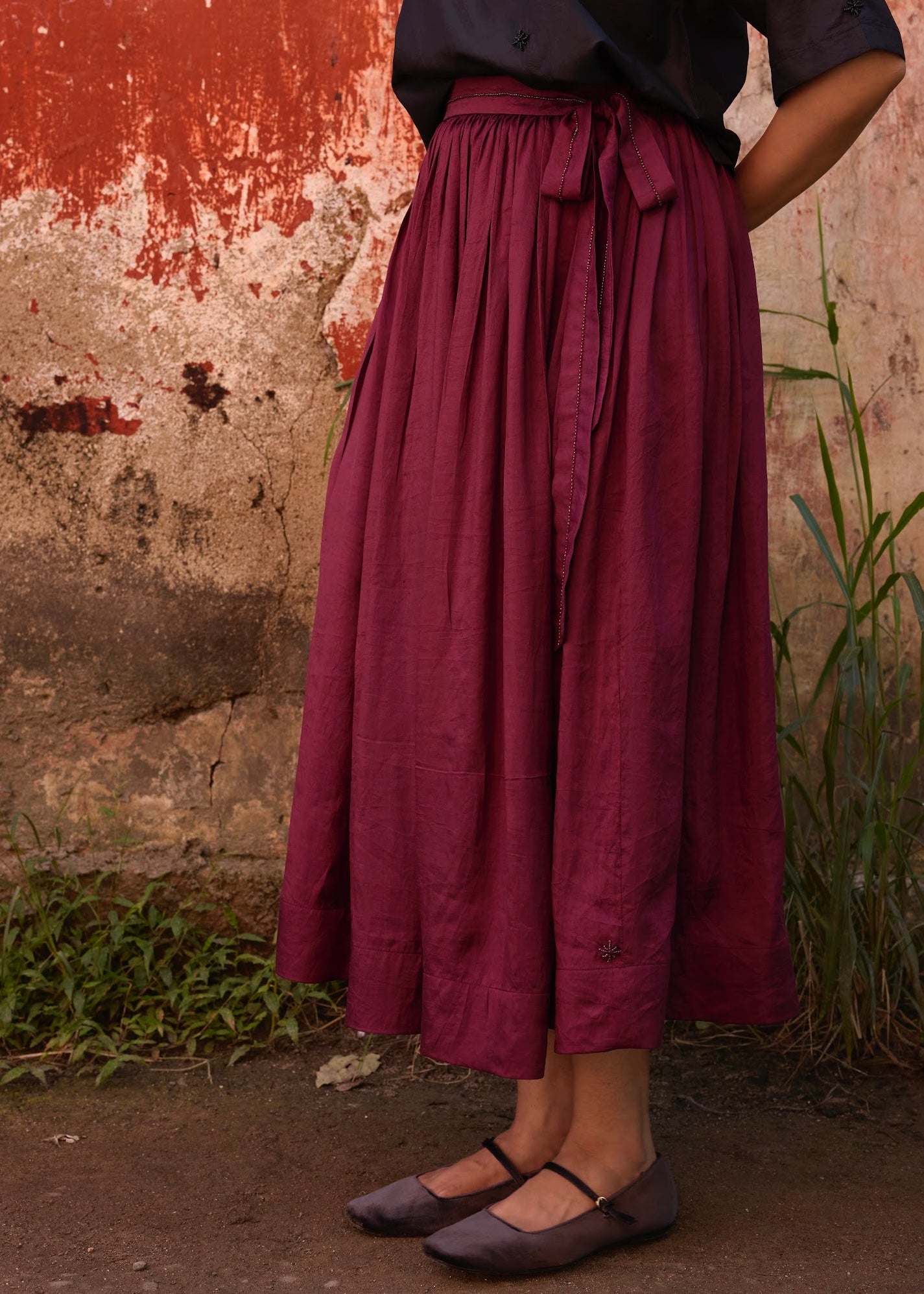 Crafted from handwoven silk, this piece features an elasticated front band that serves with an attached belt, highlighted by delicate beadwork. The look elevates as it features glass bead embroidery, that offers a distinctly festive and elegant look.